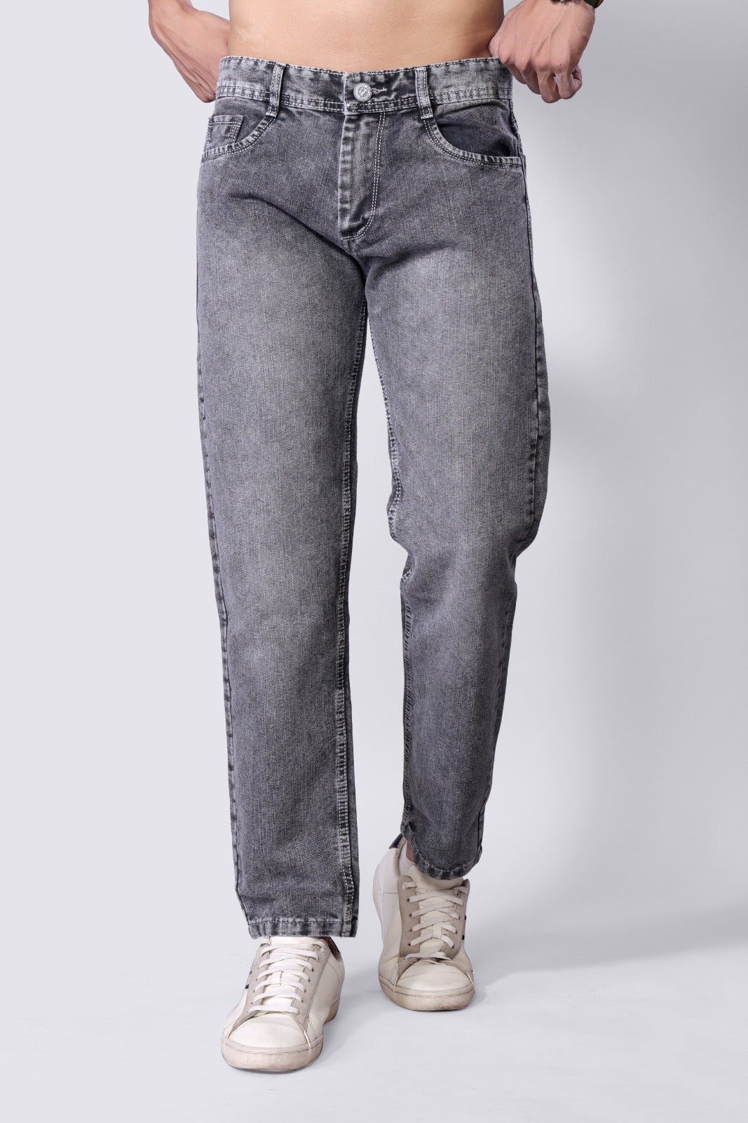 Men's Light Grey Straight Fit denim Jeans