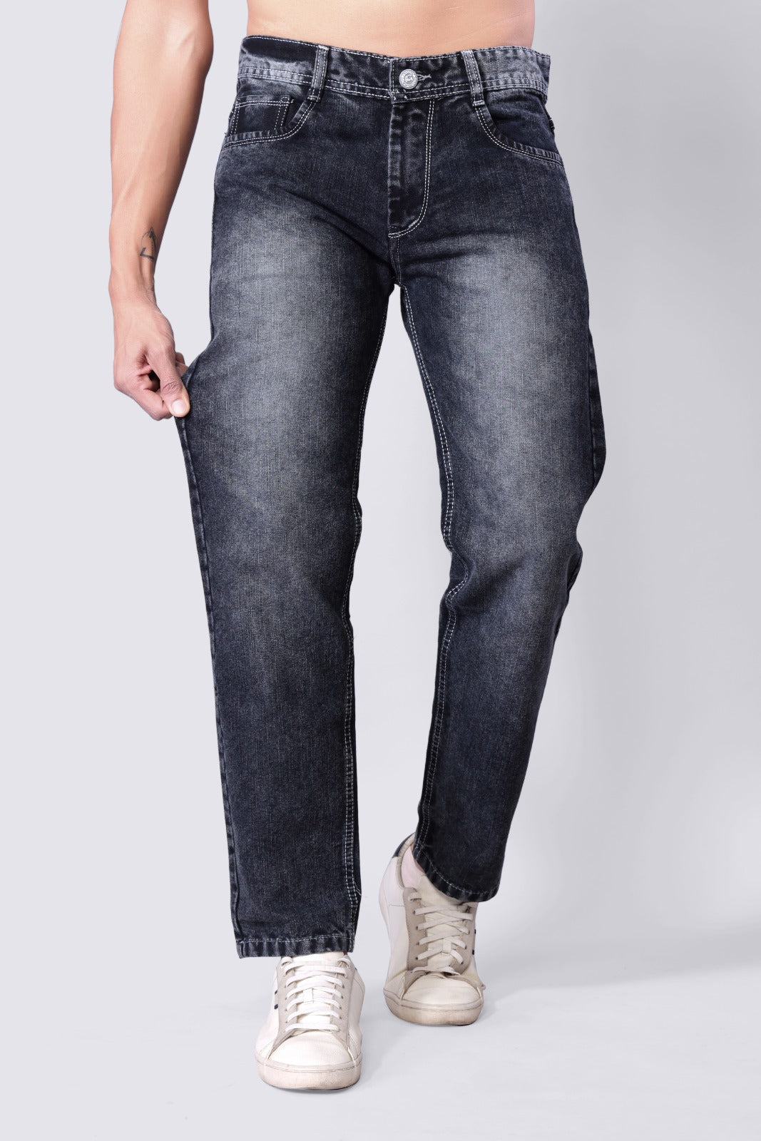 Men's Charcoal Black Straight Fit Denim Jeans