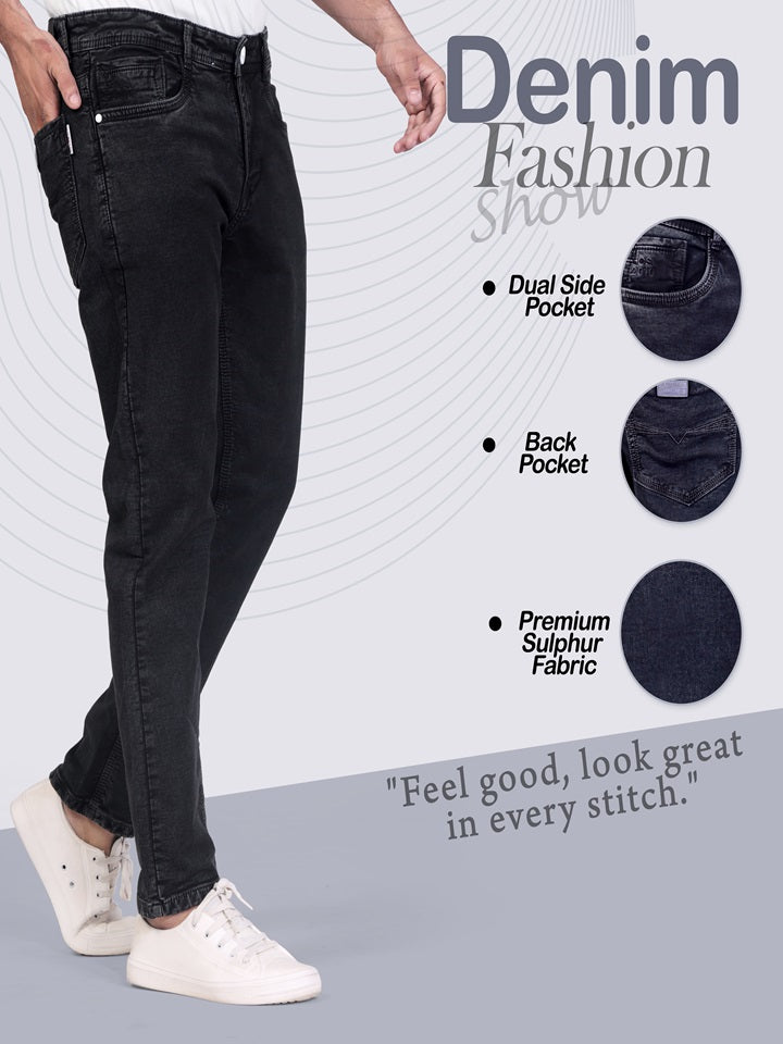 Product Description: Sulphur Jeans (Design No. A-54) Elevate your everyday style with the Jet black Sulphur twill jeans for men, Design No. A-54 , designed for comfort and versatility. Crafted from premium, durable denim, these jeans feature a modern fit that flatters all body types. The unique Sulphur wash gives them a distinctive, lived-in look, making them perfect for any casual occasion.